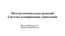 Методы оптимальных решений Системы планирования управления Доцент Матвеева