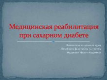 Медицинская реабилитация при сахарном диабете Выполнила студенка 6