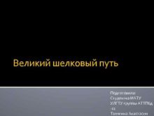 Великий шелковый путь Подготовила Студентка ИАТУ УЛГТУ группы