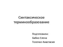 Синтаксическое терминообразование Подготовили Бабко Елена Толочко Анастасия