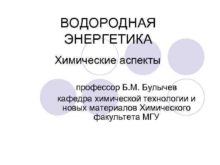 ВОДОРОДНАЯ ЭНЕРГЕТИКА Химические аспекты профессор Б М Булычев