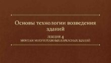 Основы технологии возведения зданий ЛЕКЦИЯ 4 МОНТАЖ МНОГОЭТАЖНЫХ