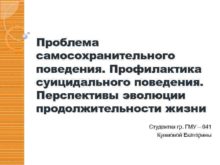 Проблема самосохранительного поведения Профилактика суицидального поведения Перспективы эволюции