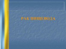 РАК ПИЩЕВОДА Цель лекции n n n
