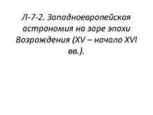 Л-7 -2 Западноевропейская астрономия на заре эпохи Возрождения