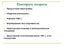 Повторить вопросы 1 Предыстория перестройки 2 Кадровая революция
