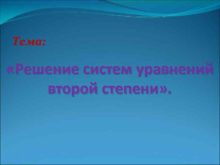 Тема Решение систем уравнений второй степени