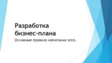 Разработка бизнес-плана Основные правила написания эссе Эссе
