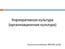 Корпоративная культура организационная культура Сокольникова Наталия ФЭТи УП