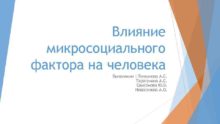 Влияние микросоциального фактора на человека Выполнили Толкунова