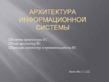 АРХИТЕКТУРА ИНФОРМАЦИОННОЙ СИСТЕМЫ Понятие архитектуры ИС Типы архитектур