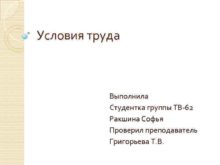 Условия труда Выполнила Студентка группы ТВ-62 Ракшина Софья