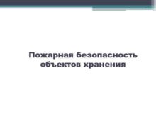 Пожарная безопасность объектов хранения Основные законодательные акты
