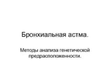 Бронхиальная астма Методы анализа генетической предрасположенности Бронхиальная