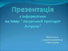 Презентація з інформатики на тему лікарський препарат Антраль