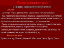 Электромагнетизм 1 Природа и характеристики магнитного поля Опыты