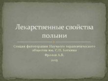 Лекарственные свойства полыни Секция фитотерапии Научного терапевтического общества