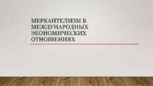 МЕРКАНТЕЛИЗМ В МЕЖДУНАРОДНЫХ ЭКОНОМИЧЕСКИХ ОТНОШЕНИЯХ Меркантилизм итал