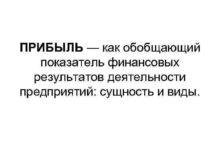ПРИБЫЛЬ как обобщающий показатель финансовых результатов деятельности