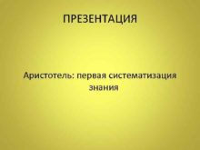 ПРЕЗЕНТАЦИЯ Аристотель первая систематизация знания РАССМАТРИВАЕМЫЕ ВОПРОСЫ
