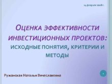 14 февраля 2018 г ОЦЕНКА ЭФФЕКТИВНОСТИ ИНВЕСТИЦИОННЫХ ПРОЕКТОВ