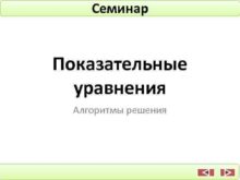 Семинар Показательные уравнения Алгоритмы решения Решение примеров