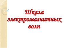 Шкала электромагнитных волн Шкала электромагнитных волн представляет