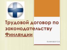 Трудовой договор по законодательству Финляндии Кочетковой О В