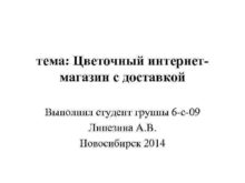 тема Цветочный интернетмагазин с доставкой Выполнил студент группы