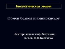 Биологическая химия Обмен белков и аминокислот Лектор доцент