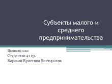 Субъекты малого и среднего предпринимательства Выполнила Студентка 41