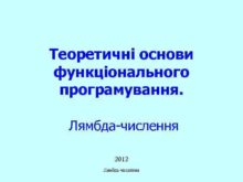 Теоретичні основи функціонального програмування Лямбда-числення 2012 Лямбда-числення