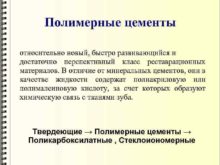 Полимерные цементы относительно новый быстро развивающийся и достаточно