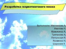 Разработка маркетингового плана Выполнили Мелникова А Иванова К