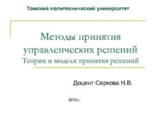 Томский политехнический университет Методы принятия управленческих решений Теории