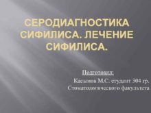 СЕРОДИАГНОСТИКА СИФИЛИСА ЛЕЧЕНИЕ СИФИЛИСА Подготовил Касымов М С