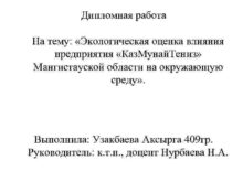 Дипломная работа На тему Экологическая оценка влияния предприятия