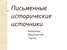 Письменные исторические источники Выполнила Факультет ОМ Группа