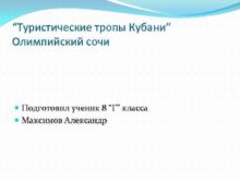 Туристические тропы Кубани Олимпийский сочи Подготовил ученик 8