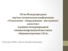 30 -ая Международная научно-техническая конференция Технология оборудование