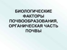 БИОЛОГИЧЕСКИЕ ФАКТОРЫ ПОЧВООБРАЗОВАНИЯ ОРГАНИЧЕСКАЯ ЧАСТЬ ПОЧВЫ Живые