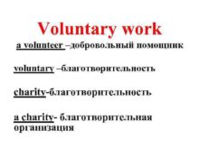 Voluntary work a volunteer добровольный помощник voluntary благотворительность
