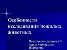 Особенности исследования пожилых животных Выполнила студентка 3 курса