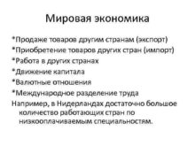 Мировая экономика Продаже товаров другим странам экспорт Приобретение