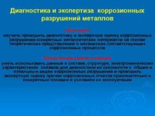Диагностика и экспертиза коррозионных разрушений металлов Цель курса