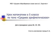 МОУ Средняя общеобразовательная школа С Ездочное Урок математики