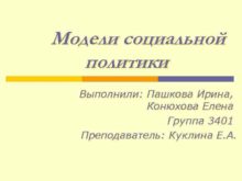 Модели социальной политики Выполнили Пашкова Ирина Конюхова Елена