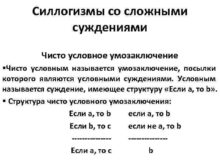 Силлогизмы со сложными суждениями Чисто условное умозаключение Чисто