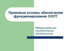 Правовые основы обеспечения функционирования ООПТ Международные национальные региональные
