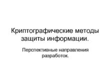Криптографические методы защиты информации Перспективные направления разработок